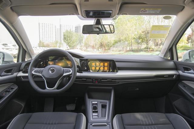 一汽-大众高尔夫在内饰方面,属于比较简洁,规整的风格,中控台还提供银色装饰件作为点缀,座椅采用双拼色,全液晶仪表的尺寸为10.25英寸,中控屏幕的尺寸为8.25英寸和10英寸,两款车型的基础配置也是比较扎实,可以满足日常使用。