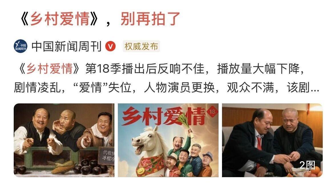 要知道,就在刚过去的这个春节,《乡村爱情18》遭遇了前所未有的口碑雪崩。 累计播放量只有可怜的3.5亿左右,比起两年前第16季的11亿,暴跌了将近70%。 豆瓣评分也跌到了系列最低点,被观众吐槽为“乡村科幻剧”。 甚至有多家官媒直接发文,劝这部剧“别再拍了”。 这一切的导火索,都指向了一个新加入的角色——臧月英。
